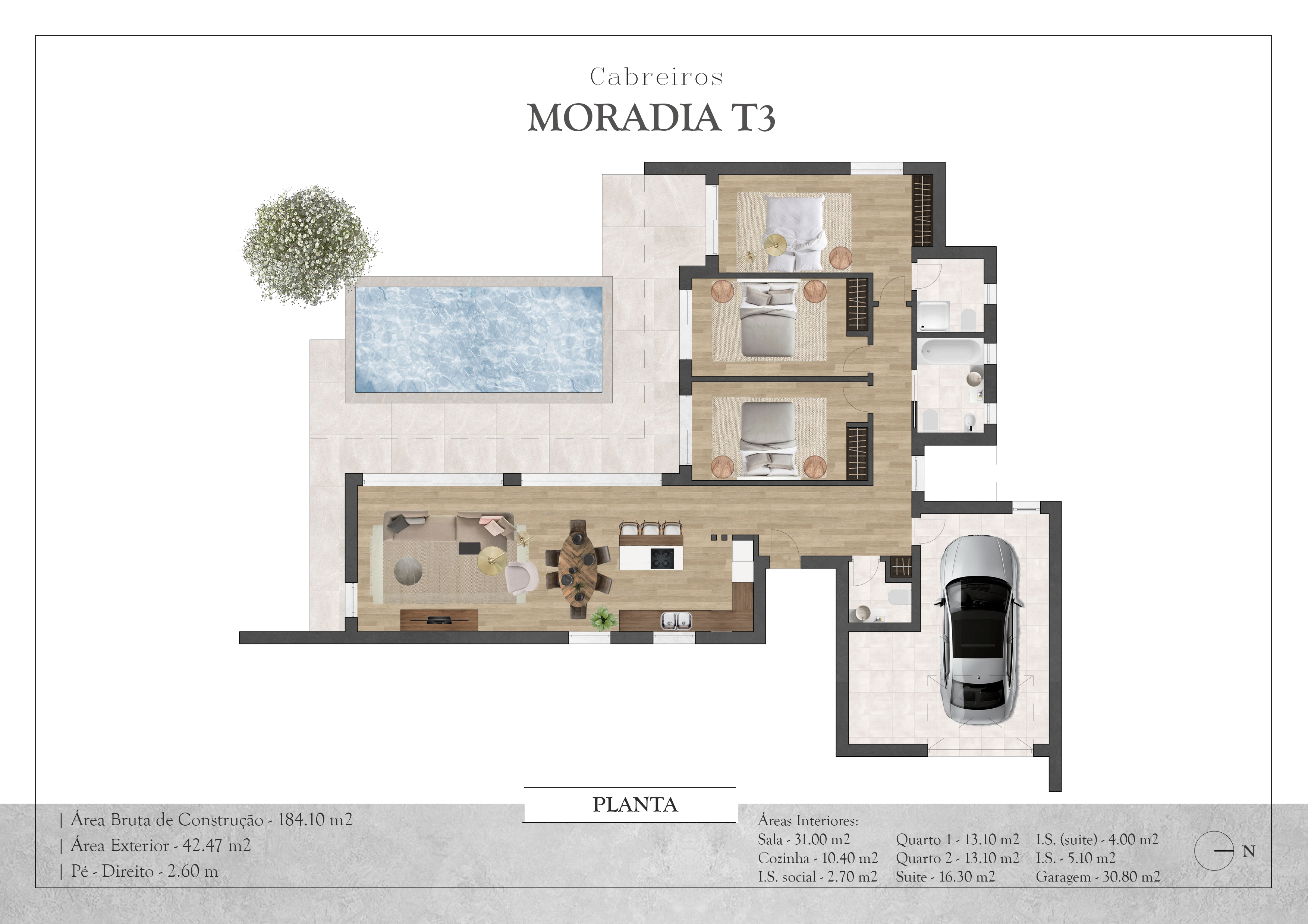 No exterior, destaca-se a piscina privativa e o jardim envolvente, perfeitos para momentos de lazer e convívio.
